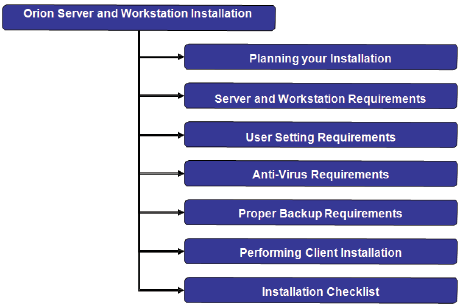 Orion will assign a technician whose primary responsibility will be to install all the necessary server components. It will be the firm’s responsibility to install and perform any client workstations. This technician will also serve as the point of contact for any installation questions or other needs that the firm may require. At the end of this document is an Installation Checklist. This item will assist you in preparing for the server installation and in providing Orion with the necessary information to install and support your firm. Please review this item and return it to your support technician.
